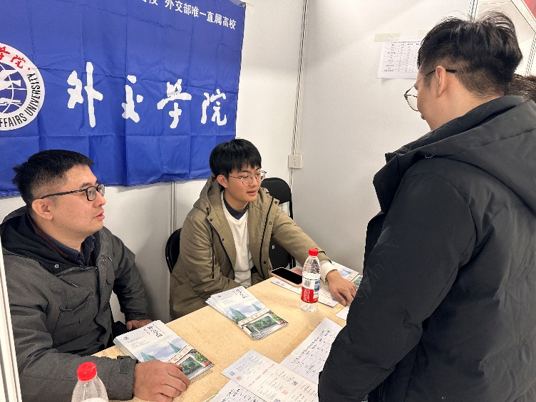 近日,由外交学院外交学与外事管理系(北京市海淀区招生宣传负责单位)侯自强老师和厉博文同学组成的招生宣传团队,参加了由北京广播电视台城市广播中心和北京高校大学生就业创业指导中心联合主办的“生涯导航·高招面对面”——2025年高中生涯规划与高招咨询会。