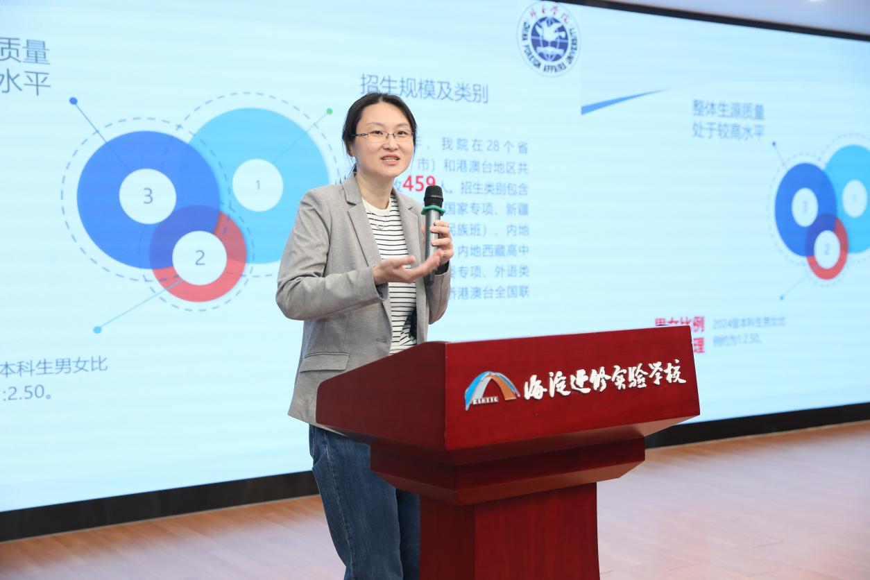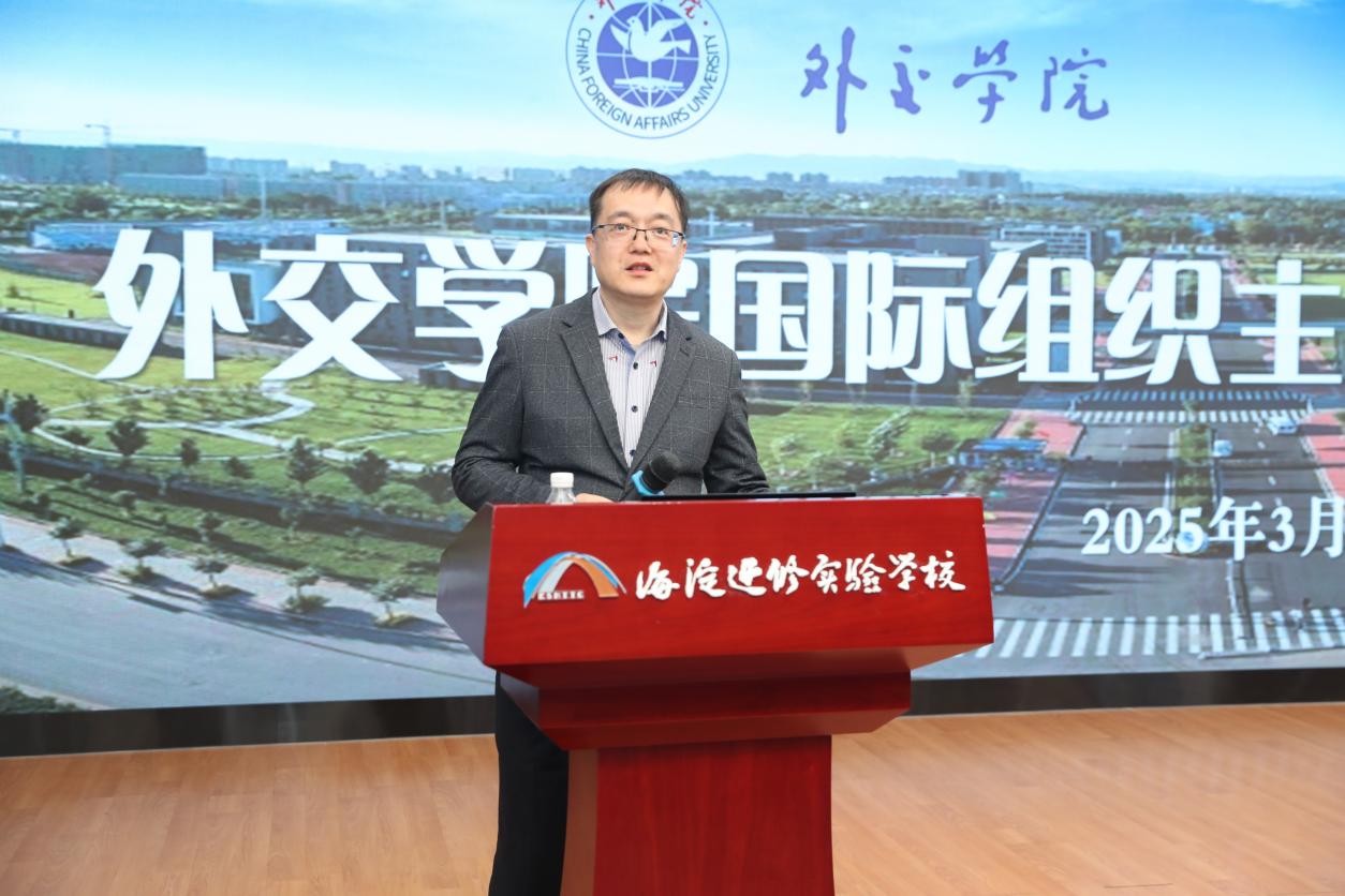 北京市海淀区教师进修学校附属实验学校是外交学院优质生源基地授牌校。3月20日下午,学院外交学与外事管理系国际组织与全球治理教研室主任牛仲君副教授、学生处招生办公室主任王维熙和思想政治教育科副科长郭思妤赴海淀进修实验学校举办主题讲座并开展招生宣传,指导该校师生深入学习习近平外交思想和人类命运共同体理念的宝贵理论价值、重大时代意义和深远世界影响,系统认识、透彻理解学院人才培养特色优势,扎实落实学院优质生源基地“1+1+N”建设机制。