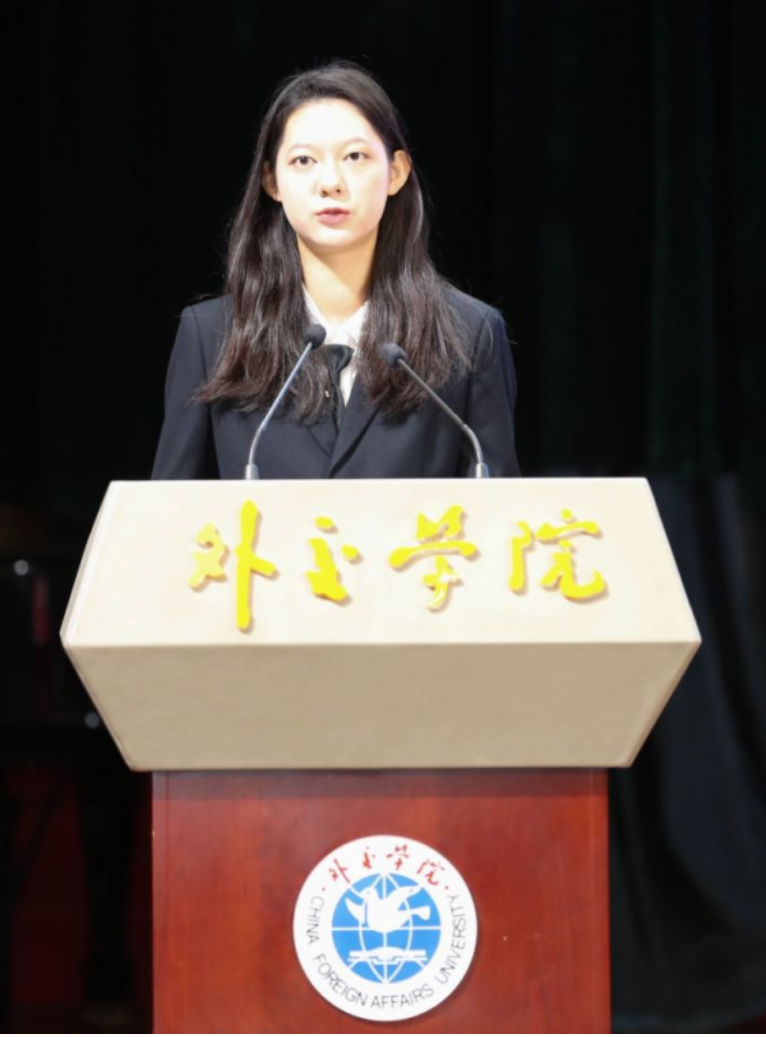 2023级外交学系张然代表新生发言。他回顾了自己为进入理想学府所作的努力,号召同学们牢记校训,不负时代,不负韶华,不负领导和老师们的殷切期待,在新时代的浪头唱响青春的船歌。