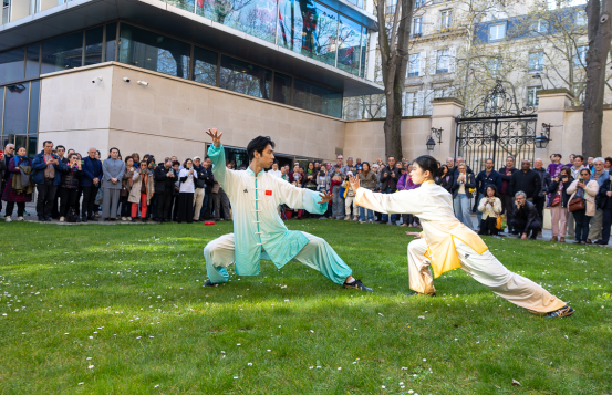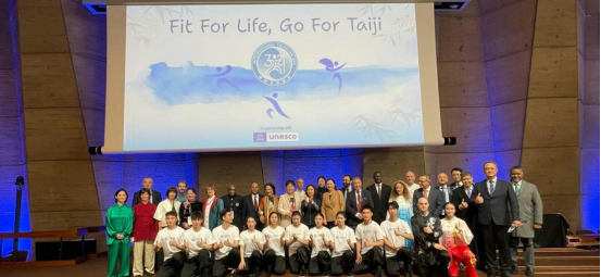 联合国教科文组织社会人文科学代理助理总干事莉迪亚·布里托、中国常驻联合国教科文组织大使衔代表杨新育、国际武术联合会秘书长张玉萍分别致辞。随后,中法两国太极拳习练者联袂表演了不同风格的太极拳流派,形式多样的习练形式,生动诠释了太极拳博大精深的技术体系与传承脉络。周庆杰教授全程穿插讲解,让现场观众既看“热闹”,又看“门道”,很好地宣介了太极拳文化。