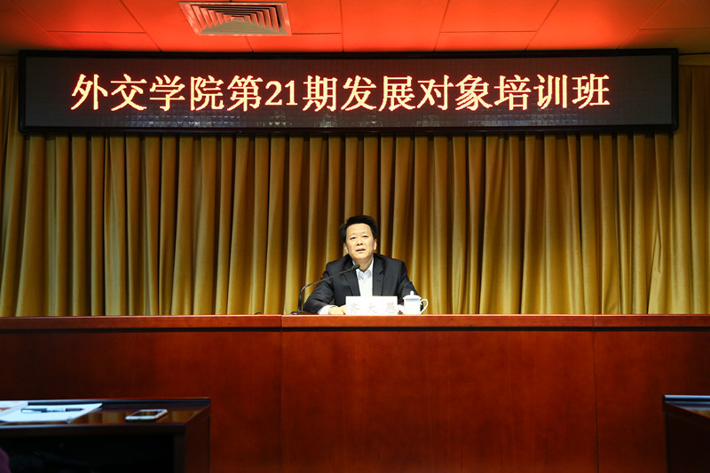 3月21日,外交学院党委举办第二十一期发展对象培训班开班仪式,党办主任、学工部长、各院系部党总支书记、辅导员和全体学员近百余人参加。院党委书记齐大愚同志出席并讲话。