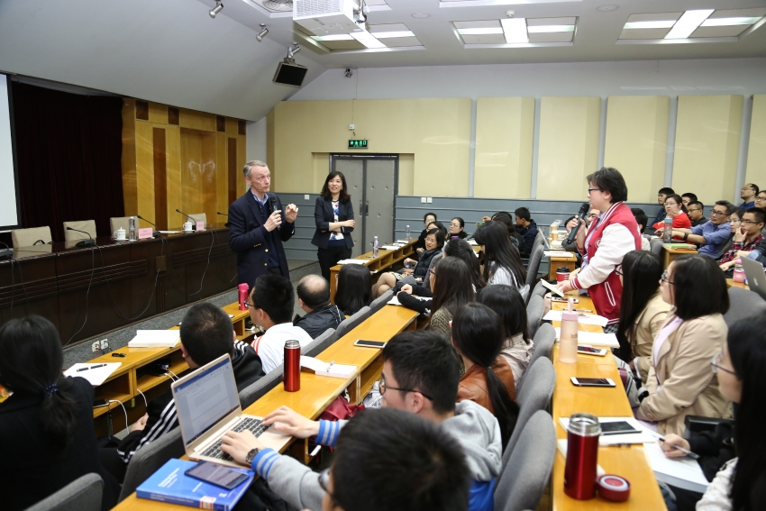 在讲座环节,卡赞斯坦教授提出“变通力”(protean power)概念,区别于世界政治中的“控制力”(control power)。他指出,传统的研究范式追求确定性,将很多不确定性等同于风险排除在研究范畴之外,从而造成了研究的局限性。“变通力”则更多关注未知的、偶然性因素以及行为主体的灵活性,可以更好地应对不确定和不可预知的情况。在讨论环节,卡赞斯坦教授通过控制力和变通力的理论框架对中美关系、难民危机、网络空间安全等经验问题进行了解释,并就与变通力相关的作用机制、可操作性和效应等问题和师生进行了交流。