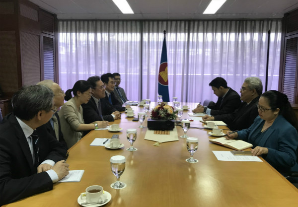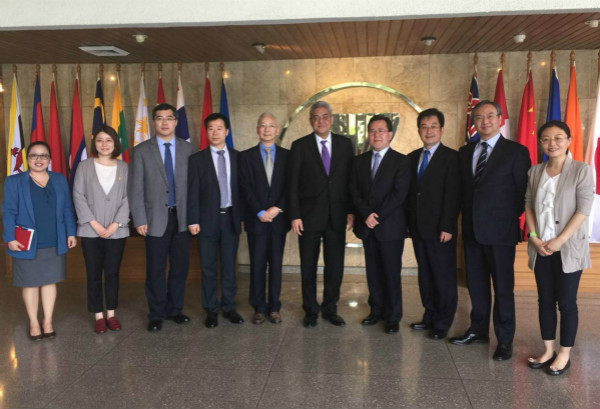 4月10日上午,江瑞平副院长率专家团访问东盟秘书处,并与东盟秘书处主管社会文化事务的副秘书长翁贴先生举行会谈。双方主要就东盟社会文化共同体进展情况、东盟身份、预防文化等深入交换了看法,并就双方在人文交流、教育合作等方面开展更多交流与合作达成初步意向。下午,江瑞平副院长一行来到中国驻东盟使团,参观了使团驻在地,并与黄溪连大使、使团和驻印尼使馆的外交官举行座谈。与会专家学者重点围绕印太战略、“一带一路”推进中的国际话语权建设、东亚经济共同体建设等问题发表了看法,并与外交官们进行了互动交流。