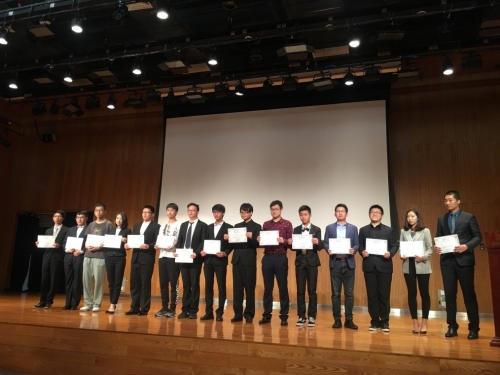 图为我校被授予优秀参会团体奖项颁奖留念