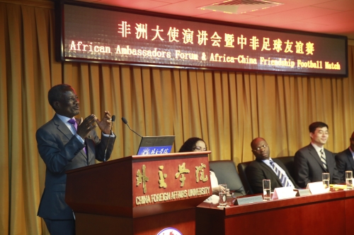 2018年5月23日,为进一步加强中国与非洲国家之间的交流,促进我院师生对非洲国家的认识和了解,与非洲国家驻华外交官之间的沟通与联系,经外交部批准,在外交学院体育对外交流研究中心、非洲研究中心、工会和团委的通力合作下,在学院多个部门的大力支持下,“非洲大使演讲会暨中非友谊足球赛”在外交学院沙河校区顺利举行。