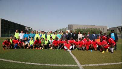 随后,非洲使团足球队与外交学院足球队本着“友谊第一,比赛第二”的原则,进行了一场友谊赛,最终比分为3:3。