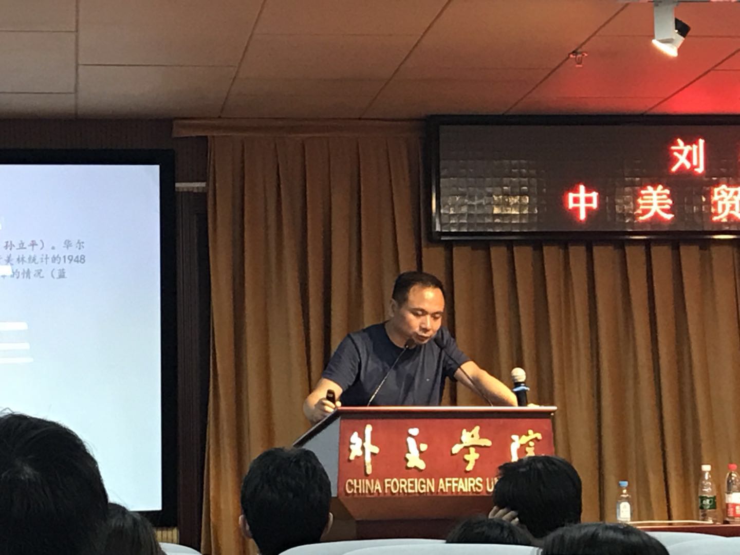 2018年5月29日晚上,金融前沿系列讲座——“中美贸易战:历史的清算”在沙河校区行政楼2012报告厅举行。天风证券首席经济学家、首席经济学家论坛理事、中国社科院研究员刘煜辉教授作为主讲人,就中美贸易战的底层逻辑向同学们作了富有深度的分析。国际经济学院国际金融系主任兼金融研究中心主任欧明刚教授主持了本次讲座。
