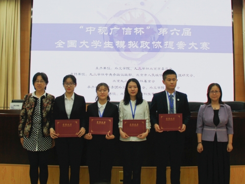 经过客观题、提案审议、调研展示及答辩三个环节的激烈角逐,广州外语外贸大学代表队荣获一等奖;中国政法大学、外交学院、厦门大学代表队荣获二等奖;首都师范大学、山东青年政治学院、北京师范大学、北京外国语大学代表队荣获三等奖。