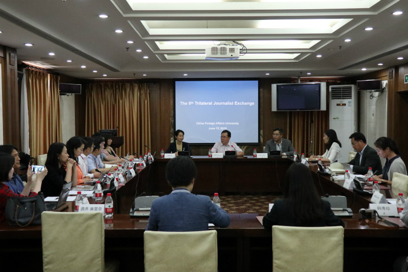 6月15日下午,中日韩记者交流团一行访问我院并与学者座谈。本次记者交流团由中日韩三国合作秘书处主办,邀请了来自中日韩三国知名媒体的9名资深记者。外交学院副院长江瑞平教授到会致辞并就中日韩合作等问题发表了看法。中日韩三国合作秘书处副秘书长韩梅致辞并介绍相关情况。我院中国外交理论研究中心主任魏玲、国际关系研究所所长曲博、外交学系副教授朱丹丹、亚洲研究所助理研究员李福建、国际关系研究所博士王家曦以及中国国际问题研究院副教授宋均营等参加座谈会。座谈会由亚洲研究所所长郭延军主持。