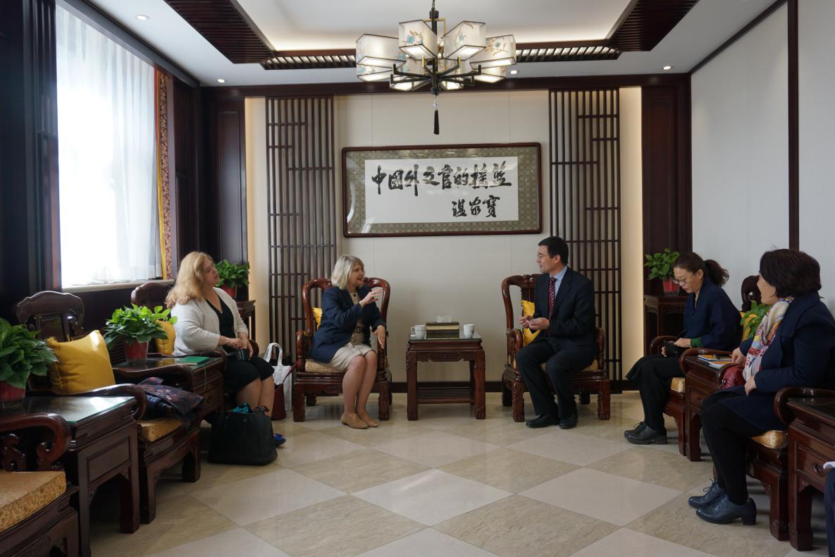 高飞副院长首先对Konan教授和Lyons教授的来访表示欢迎,并介绍了外交学院的特色及学科建设等情况。Konan教授介绍了夏威夷大学马诺阿分校及社会科学学院的情况。此后,双方就两校合作的领域、方式进行了友好而充分的交流,并就合作备忘录达成一致。