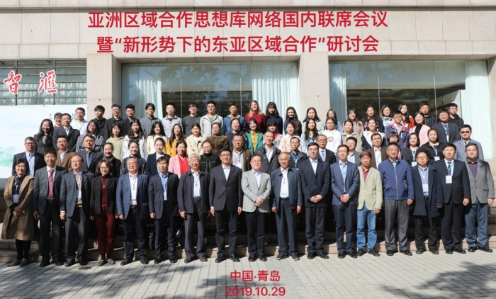2019年10月29日,亚洲区域合作思想库网络国内联席会议暨“新形势下的东亚区域合作”研讨会在山东省青岛市举行。会议由外交学院和青岛大学联合主办,外交学院副院长高飞、青岛大学副校长于红波出席开幕式并致辞,外交部亚洲司参赞陈峰、中国社科院学部委员张蕴岭、外交学院教授江瑞平发表主旨发言,来自国内25家亚洲区域合作思想库网络国内成员单位的50余名专家学者与会,就新形势下的东亚区域合作及区域热点问题进行了研讨。