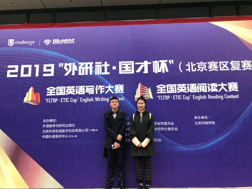 2019年11月2日,2019“外研社•国才杯”全国英语写作大赛北京赛区复赛在北京印刷学院举行。英语系本科生丁青筠和研究生尹华峰代表外交学院参赛,分获特等奖、三等奖。丁青筠同学将代表外交学院参加2019“外研社•国才杯”全国英语写作大赛的总决赛。