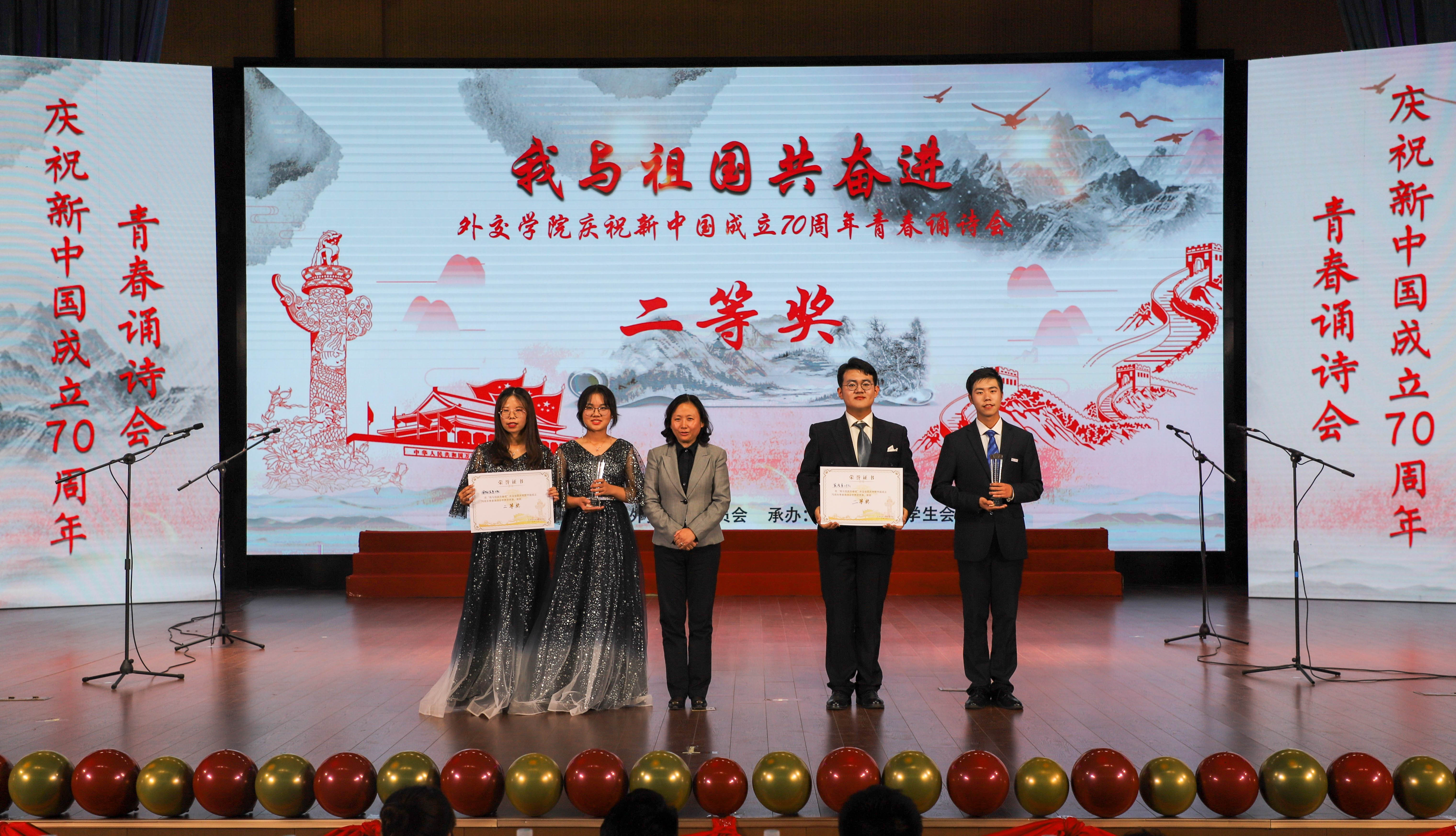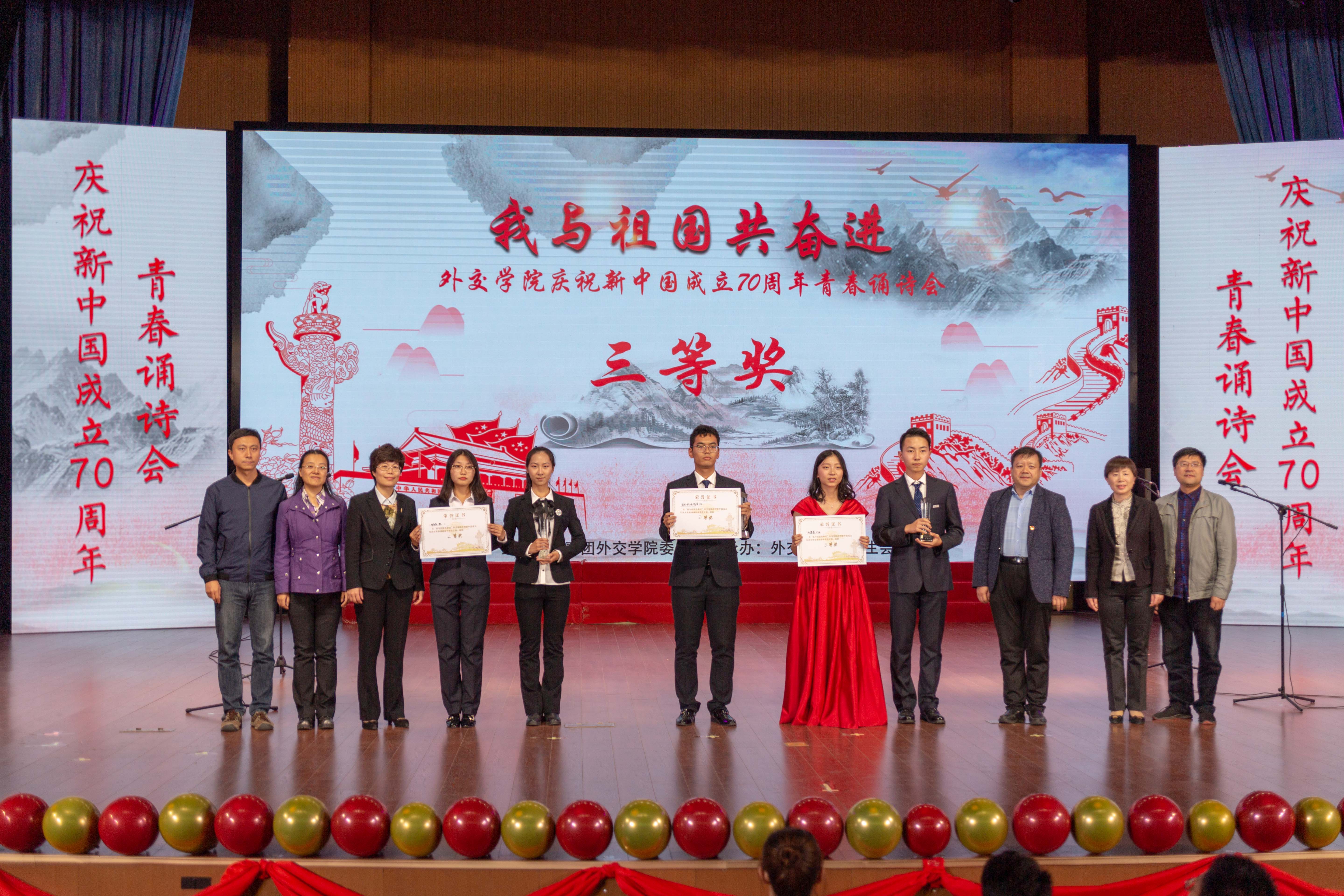 经过评比,研究生部2队荣获本次诵诗会一等奖;英语系2队、国际法系2队获得二等奖;国际经济学院1队、外语系1队、外交学与外事管理系1队获得三等奖;国际法1队荣获最佳创意奖。