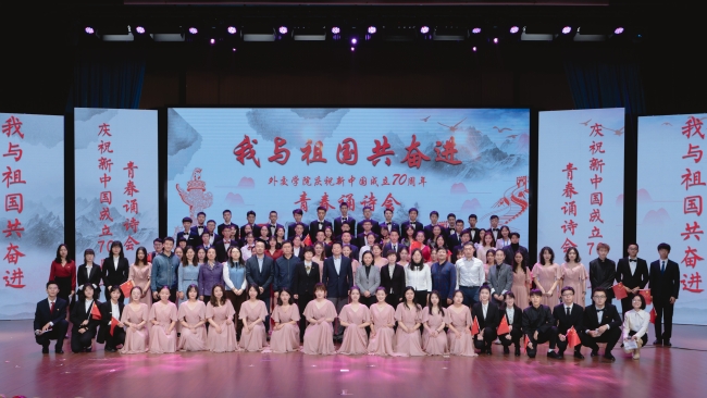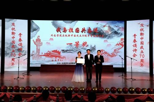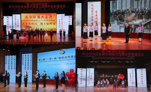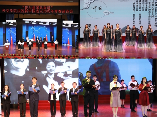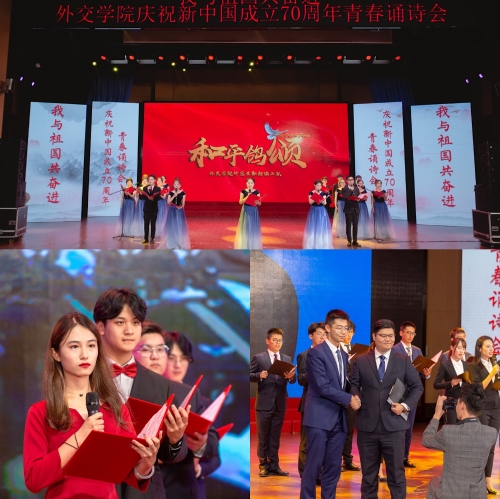 为庆祝中华人民共和国成立70周年,激励和引导我院广大青年团员不忘初心、牢记使命,唱响礼赞新中国、奋斗新时代的青春主旋律,10月23日,学院团委举办“我与祖国共奋进”外交学院庆祝新中国成立70周年青春诵诗会。本次诵诗会共有各院系部组织的14支队伍撰写原创诗歌、进行编排朗诵,并参与全院评比。