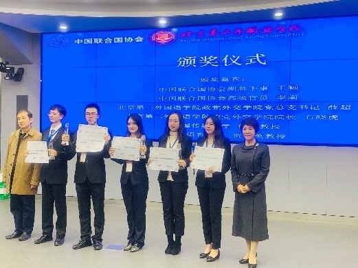 经过预赛和决赛的激烈角逐,最终由17级袁睿、史文波、刘若淇组成的外院-北二外联合培养队获得二等奖;由17级贾煦祺、刘美漪、刘亦奇组成外交学院队获得三等奖。同时,牛仲君、杨阳老师获得优秀指导教师奖,外交学院获得最佳组织奖。