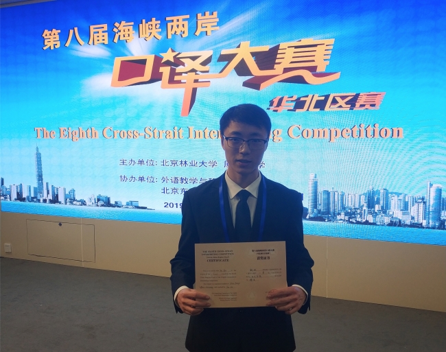 2019年11月24日,第八届海峡两岸口译大赛华北区赛在北京林业大学隆重举行。英语系MTI口译专业研究生解斌、盛志程两位同学参加了本次比赛,并取得喜人成绩。