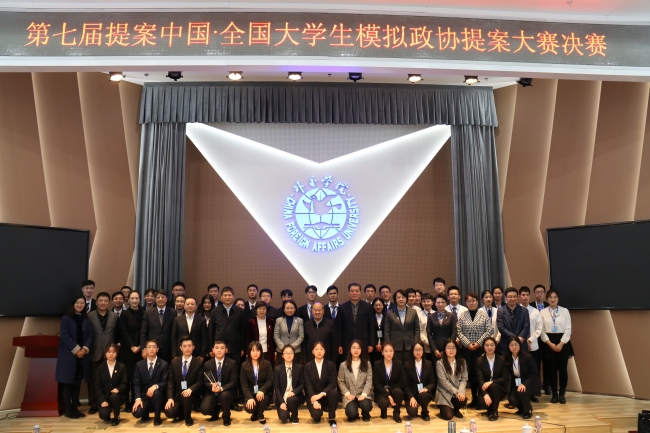 2019年11月29日至12月1日,第七届提案中国·全国大学生模拟政协提案大赛在京圆满落幕。本次大赛由外交学院、九三学社北京市委员会共同主办,在北京市人民政协理论与实践研究会的支持下,由共青团外交学院委员会、外交学院模拟政协协会承办。来自全国各地23所知名高校的150余名代表参加了本次比赛。