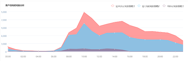 从综合服务门户近七天时间段访问分析,看出每天上午10点左右是峰值访问时间,下午3点左右又出现一个小高峰。原因是第一大节学生10点下课,第二大节学生10:20上课,10点左右是上午两个大节交替的时间,这个时间段是师生登录人数最密集的时间段。下午3点左右是下午两个大节交替的时间段。所以VPN设备、网络设备和服务器在这两个时间段访问压力最大,可能会出现访问延时的情况。