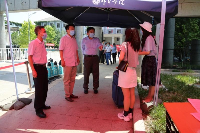 6月10日上午,外交学院党委书记齐大愚、院长徐坚等院领导、市教委派驻学院联络员林先齐老师一同检查学院毕业生返校首日工作情况。