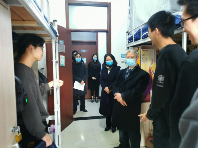 崔书记详细了解“宿舍周末大扫除”活动进展情况,并与学生交谈,希望同学们在疫情防控常态化背景下,从自身做起、从小事做起,保持良好的卫生习惯,营造干净整洁的宿舍环境,遵守校园疫情防控要求,提高日常生活中的卫生和疫情防控意识。同时,崔书记叮嘱同学们要认真刻苦学习,积极传承和弘扬中华民族优秀传统文化,为实现中华民族伟大复兴而读书,勉励同学们坚定理想,知行合一,成为“爱祖国、知世界、通专业、精外语、高素质、复合型”的优秀外交外事人才。