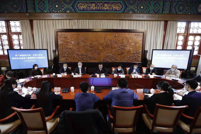 2020年12月5日,第八届提案中国·全国大学生模拟政协提案大赛在京圆满落幕。本次大赛由共青团北京市委员会、中共北京市委教育工作委员会、北京市人民政协理论与实践研究会、外交学院主办,共青团外交学院委员会、外交学院模拟政协协会承办,来自清华大学、北京大学等48所北京知名高校的133支队伍参加。北京市政协党组书记、主席吉林,市政协党组副书记、副主席杨艺文,外交学院党委书记崔启明,市教工委常务副书记郑吉春,团市委书记李军会及各主办单位相关负责同志、政协委员等出席大赛颁奖仪式暨座谈会。