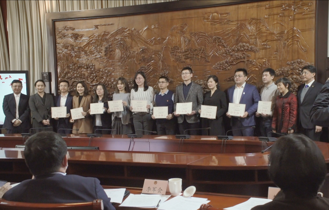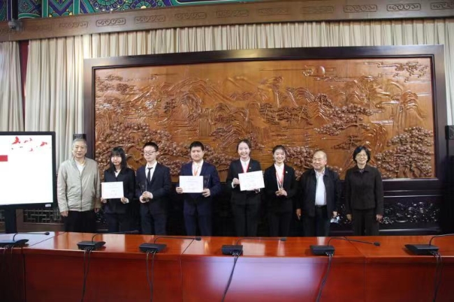 北京市政协常委张毅、北京市政协委员朱良、全国政协机关团委书记陈中鹏、外交部团委书记沈思维颁发优秀组织奖