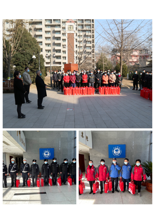 2021年2月9日,我院党委书记崔启明,副院长李洪梅、高飞亲切慰问双校区后勤、物业、保卫以及一线工作的服务人员,向他们送上诚挚的问候和新春的祝福,让每一名在京过年的留校人员感受到过年的温暖。