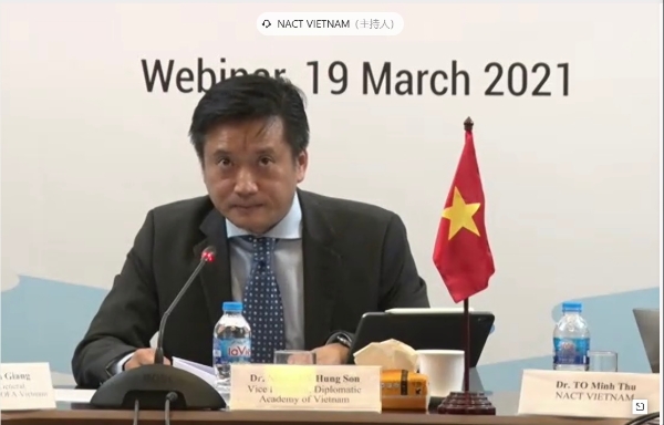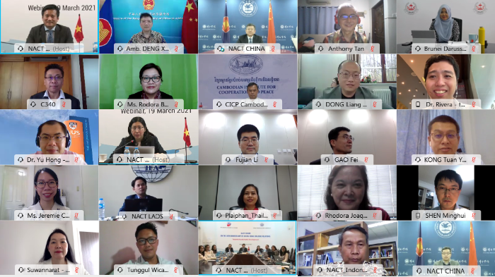 2021年3月19日,中国—东盟思想库网络(NACT)第七次国家协调员会议暨中国—东盟对话关系30周年智库论坛以视频会议形式成功召开。本次会议由中国外交学院和越南外交学院联合主办。来自中国驻东盟使团、东盟秘书处、越南和文莱两国外交部代表以及中国和东盟各国相关领域专家约40人出席会议。中国外交学院院长徐坚博士、越南外交学院副院长阮鸿声博士(Nguyen Hung Son)致开幕词。中国外交学院副院长高飞教授致闭幕词。