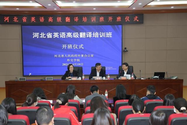 受河北省人民政府外事办公室委托,外交学院于4月18日至23日在展览路校区举办首届“河北省英语高级翻译培训班”,参训学员28人,分别来自河北省外办、友协、发改委和商务厅等多家单位。本期培训班由我院外事办公室承办,根据河北省外办培训需求精心安排了一系列提高英语口译能力的专题讲座,旨在通过此次培训全面提升河北省英语高级翻译人才的业务水平和个人能力,进一步加速和扩大河北省对外开放程度,促进京津冀外交外事协同发展。