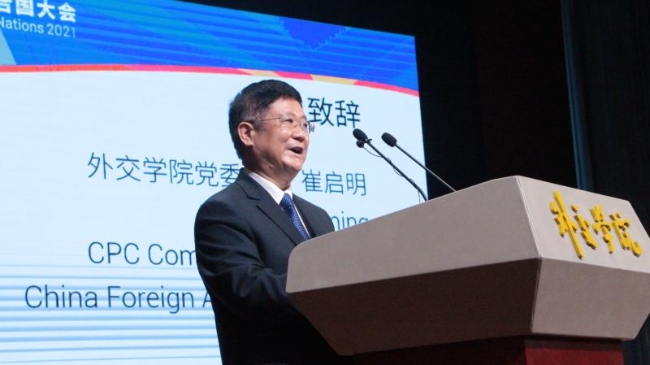 外交学院党委书记崔启明大使在致辞中表示,此次大会的主题是“声生不息,和合共赢”,第一个“声”字是声音的“声”,既寓意中国在世界舞台上发声,也代表联合国为维护世界和平发声,还标志着青年学子在模拟联合国实践中就国际热点问题发声。1995年,外交学院首次将模拟联合国活动引入中国,20多年来,一代又一代青年学子在模拟联合国的实践舞台上以人类命运为己任,以世界和平为目标,探讨全球热点议题,培养世界公民意识,扩展了视野,增长了才干。