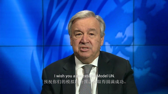 联合国秘书长古特雷斯向大会发来祝贺视频