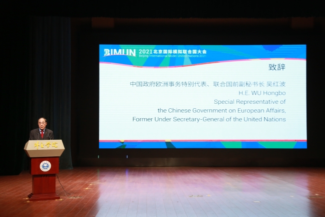 2021年5月20日至23日,由外交部、教育部、共青团中央、中国联合国协会指导,外交学院主办的“声生不息,和合共赢”2021北京国际模拟联合国大会在北京成功举办。大会为期四天,来自全国160余所知名大学和中学约650名学生代表通过线上、线下方式参会。青年学子们模拟不同国家,遵循联合国议事规则,围绕全球治理热点议题进行深入探讨,提出青年方案。