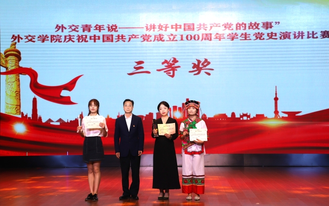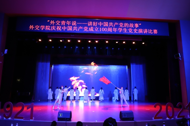 在演讲中,同学们以外交学院学子视角感情真挚、形式新颖地呈现了中国共产党波澜壮阔的百年发展历程,讲述了党的辉煌成就、艰辛历程、历史经验和优良传统,展现出我院学子接力新时代中国特色大国外交事业和中华民族伟大复兴的坚定决心和信心。
