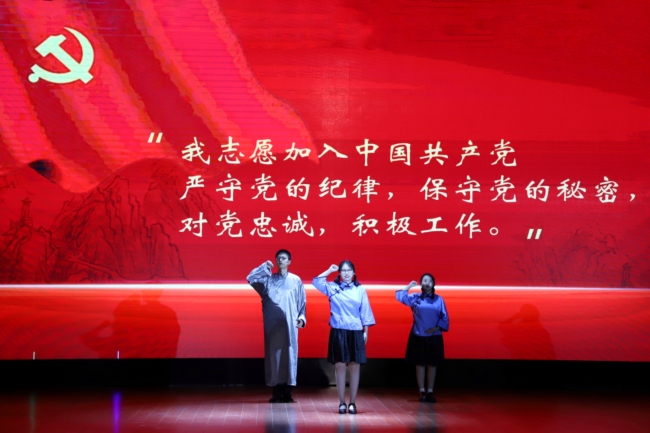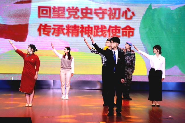我校大学生艺术团舞蹈队表演庆祝建党百年特别作品《庄严的宣誓》,以舞蹈形式表现出革命火种生生不息,红军精神代代相传的故事。
