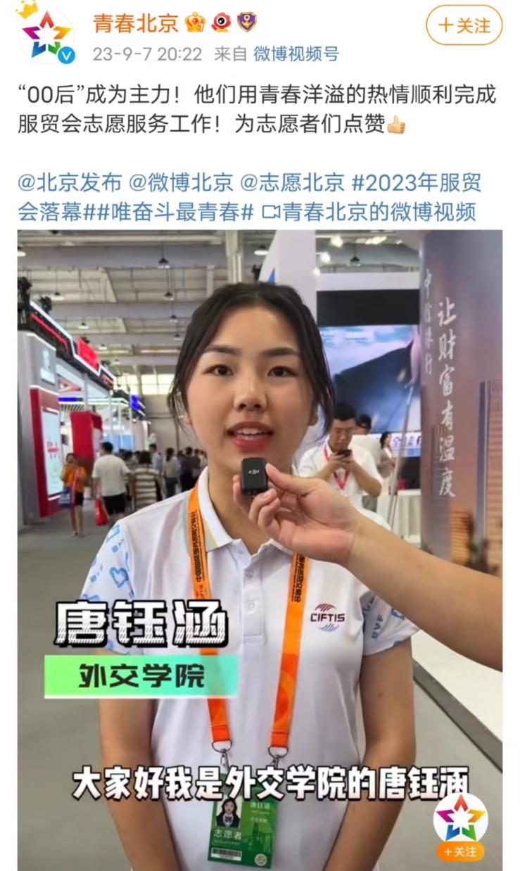 在本次服贸会志愿服务中,外交学院的志愿者们践行了“奉献、友爱、互助、进步”的志愿者精神,在利用专业所学服务大会、展现我院学子优秀品质和靓丽风采的同时,也得到了有关各方的高度肯定和广泛好评,以昂扬热情的服务态度迎接来自世界各地的参会企业和观展嘉宾,用微笑、真诚与专业共同绘就了一道耀眼的“志愿风景”,以实际行动诠释了新时代中国青年的使命与担当。
